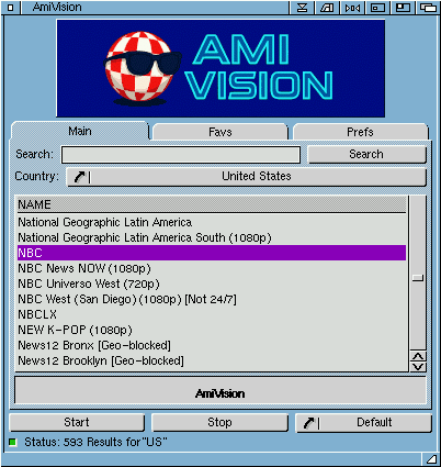An IPTV frontend for AmigaOS 3.2 – featuring channel search, channel list by country, favorites list, profiles, ARexx automation, and server-based transcoding.